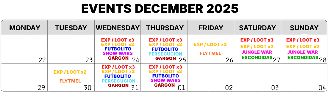 • December 20 & 21 from 14:00 to 18:00 - Exp/Loot x2