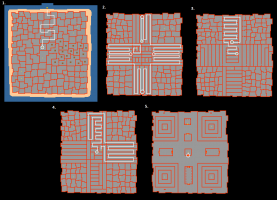 En la imagen 2. (2º piso) puedes apreciar un circuito para recorrer y usar las 4 estatuas faltantes, en total son 8 estatuas que deben ser usadas. Una vez que las 8 estatuas (las 4 de las esquinas y las 4 del circuito) hayan sido usadas el equipo debe proseguir subiendo de nivel como se muestra en las imagenes 3. y 4.